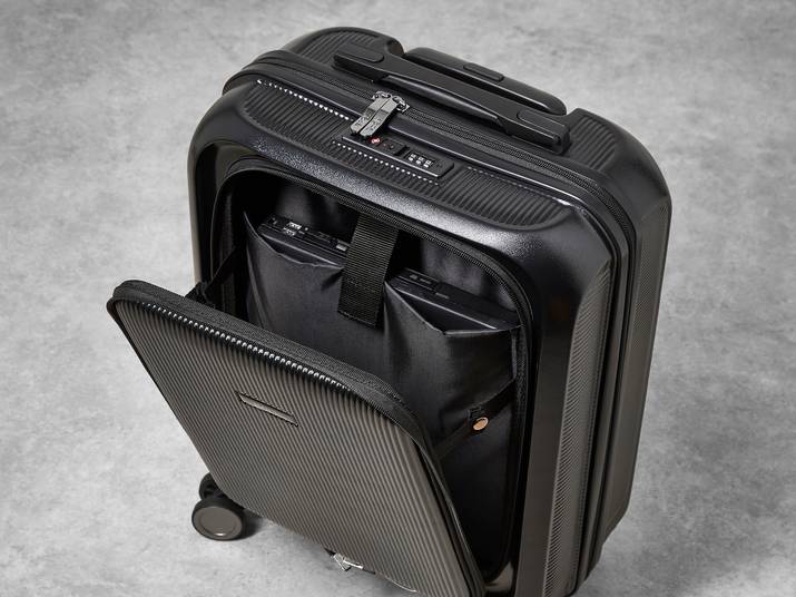 Austin's cabin case features an easy-access front pocket to house in-flight essentials. Fitting a 17 inch laptop, the pocket is designed for convenience and care, protecting valuables with the same impact resistant material as the rest of the case.