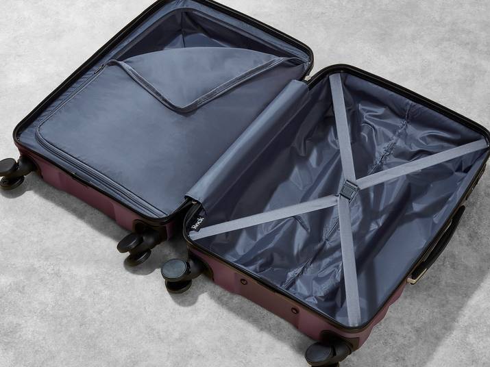The interior of Berlin has luxurious soft touch lining and a mesh divider section. The design also features a convenient zipped inside pocket and elasticated packing straps to keep your clothes securely in place.