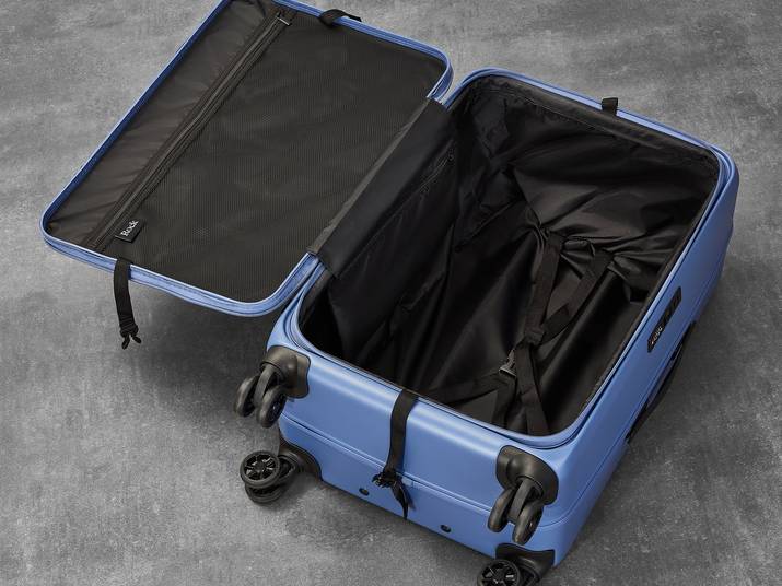 The interior of Eden has luxurious soft touch lining and a mesh divider section. The design also features a convenient zipped inside pocket and adjustable packing straps to keep your clothes securely in place.