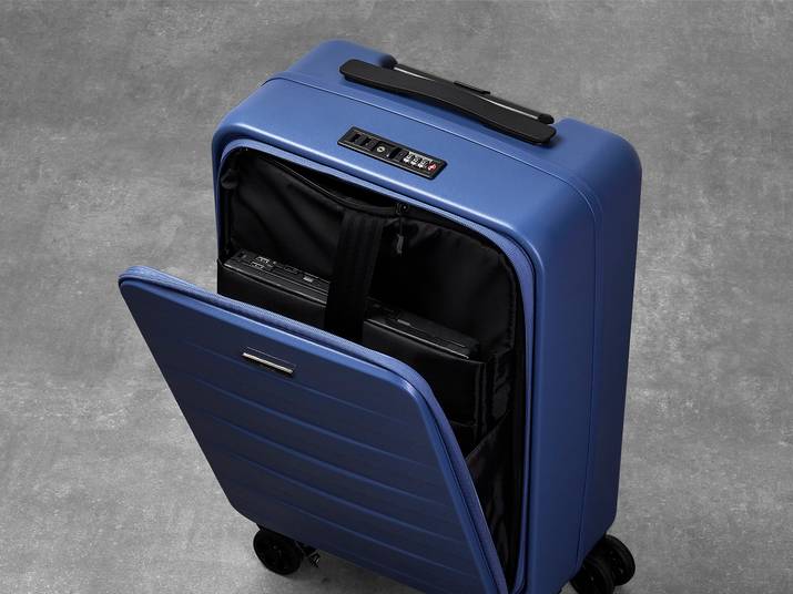 Eden's cabin case features an easy-access front pocket to house in-flight essentials. Fitting a 16 inch laptop, the pocket is designed for convenience and care, protecting valuables with the same impact resistant material as the rest of the case.