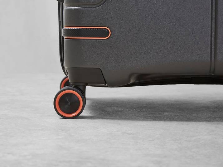 8x easy glide double wheels for improved stability and handling. Effortless 360-degree rotating wheels make manoeuvring around an airport or train stations fast and easy.