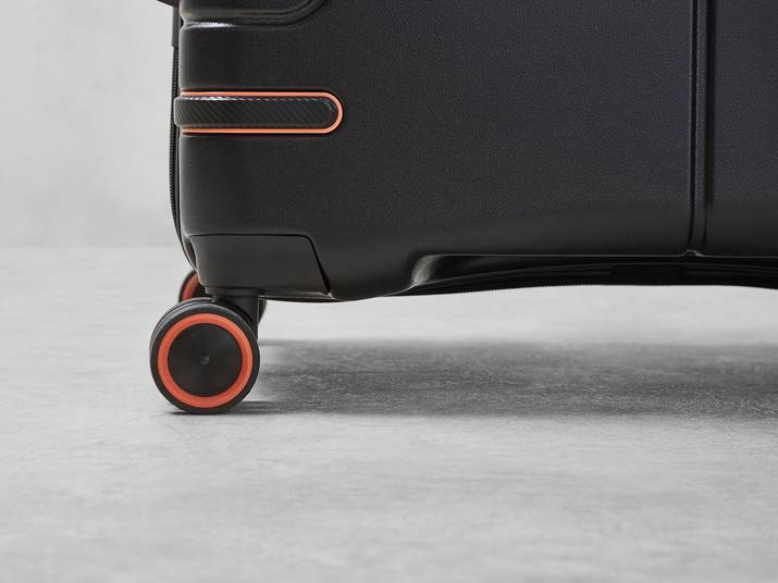 8x easy glide double wheels for improved stability and handling. Effortless 360-degree rotating wheels make manoeuvring around an airport or train stations fast and easy.