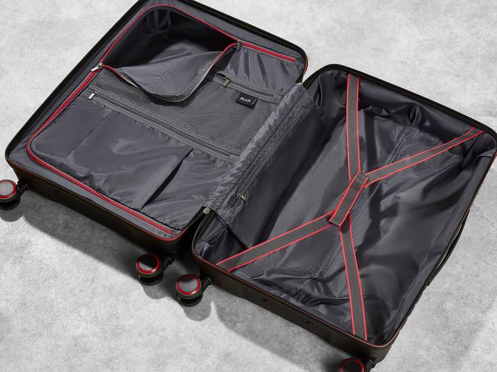 The interior of Hydra-Lite has luxurious soft touch lining and a mesh divider section. The design also features a convenient zipped inside pocket and adjustable packing straps to keep your clothes securely in place.