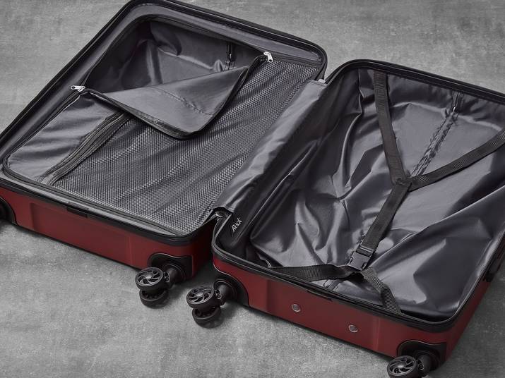 The interior of Lincoln has luxurious soft touch lining and a mesh divider section. The design also features a convenient zipped inside pocket and adjustable packing straps to keep your clothes securely in place.