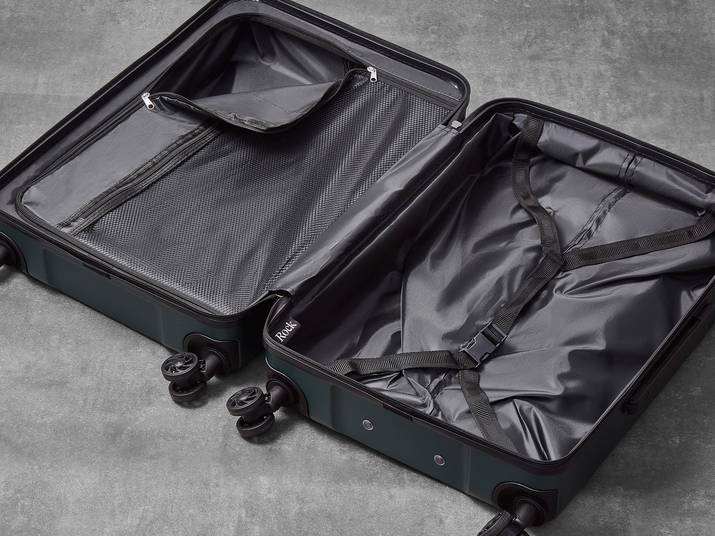The interior of Lincoln has luxurious soft touch lining and a mesh divider section. The design also features a convenient zipped inside pocket and adjustable packing straps to keep your clothes securely in place.