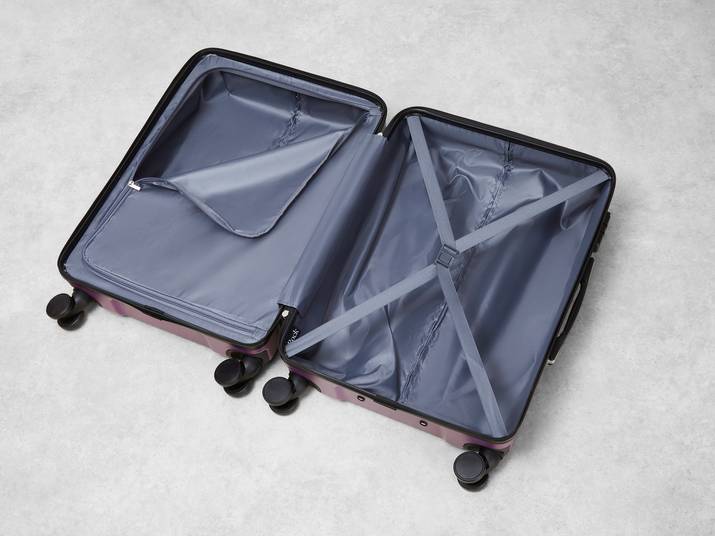 The interior of Lisbon is fully lined with a divider section. The design also features packing straps to keep your clothes in place.