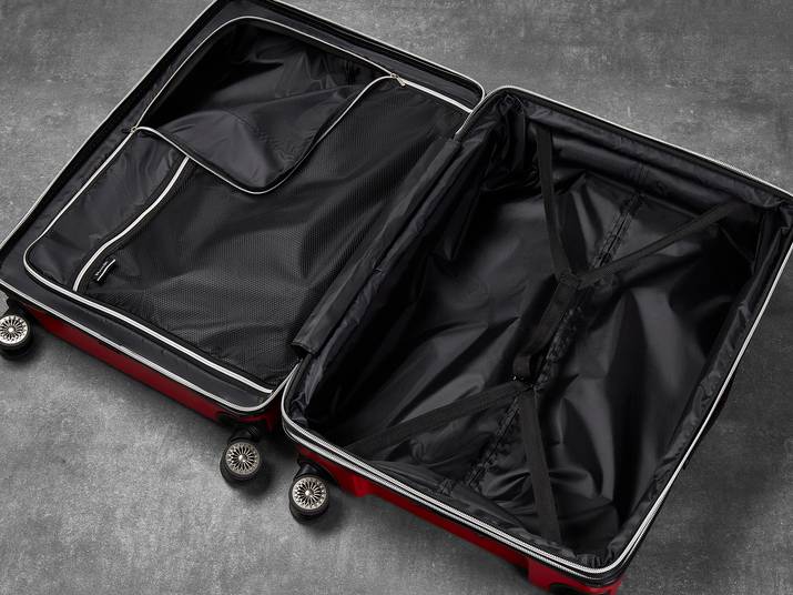 The interior of Maya has luxurious soft touch lining and a mesh divider section. The design also features a convenient zipped inside pocket and adjustable packing straps to keep your clothes securely in place.
