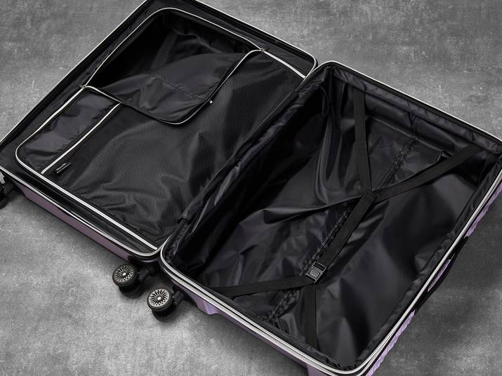 The interior of Maya has luxurious soft touch lining and a mesh divider section. The design also features a convenient zipped inside pocket and adjustable packing straps to keep your clothes securely in place.