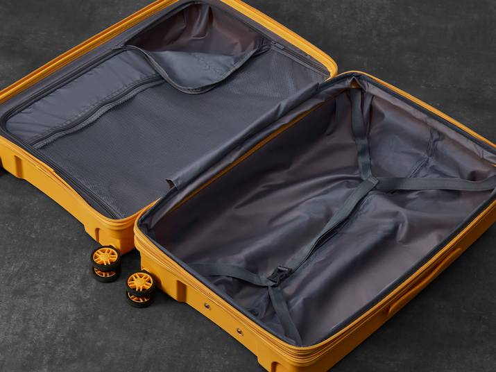 The interior of Palma has luxurious soft touch lining and a mesh divider section. The design also features a convenient zipped inside pocket and adjustable packing straps to keep your clothes securely in place.