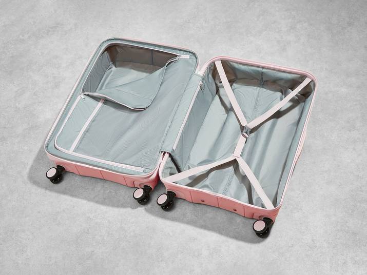 The interior of Pixel has luxurious soft touch lining and a mesh divider section. The design also features a convenient zipped inside pocket and elasticated packing straps to keep your clothes securely in place.