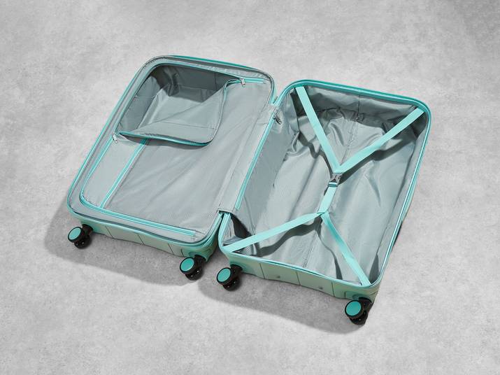 The interior of Pixel has luxurious soft touch lining and a mesh divider section. The design also features a convenient zipped inside pocket and elasticated packing straps to keep your clothes securely in place.