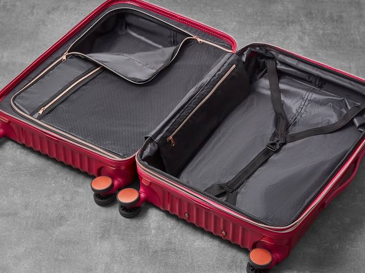 The interior of Selene has luxurious soft touch lining and a mesh divider section. The design also features a convenient zipped inside pocket and adjustable packing straps to keep your clothes securely in place.