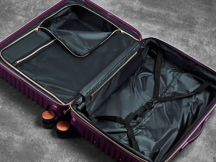 The interior of Selene has luxurious soft touch lining and a mesh divider section. The design also features a convenient zipped inside pocket and adjustable packing straps to keep your clothes securely in place.