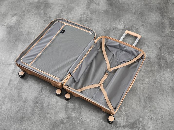 The interior of Tulum has luxurious soft touch lining and a mesh divider section. The design also features a convenient zipped inside pocket and adjustable packing straps to keep your clothes securely in place.