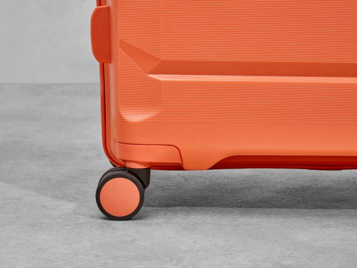 8x easy glide double wheels for improved stability and handling. Effortless 360-degree rotating wheels make manoeuvring around an airport or train stations fast and easy.