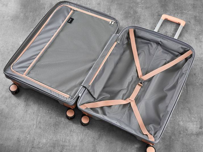 The interior of Tulum has luxurious soft touch lining and a mesh divider section. The design also features a convenient zipped inside pocket and adjustable packing straps to keep your clothes securely in place.