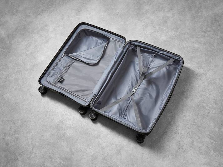 The interior of Vancouver has luxurious soft touch lining and a mesh divider section. The design also features a convenient zipped inside pocket and adjustable packing straps to keep your clothes securely in place.