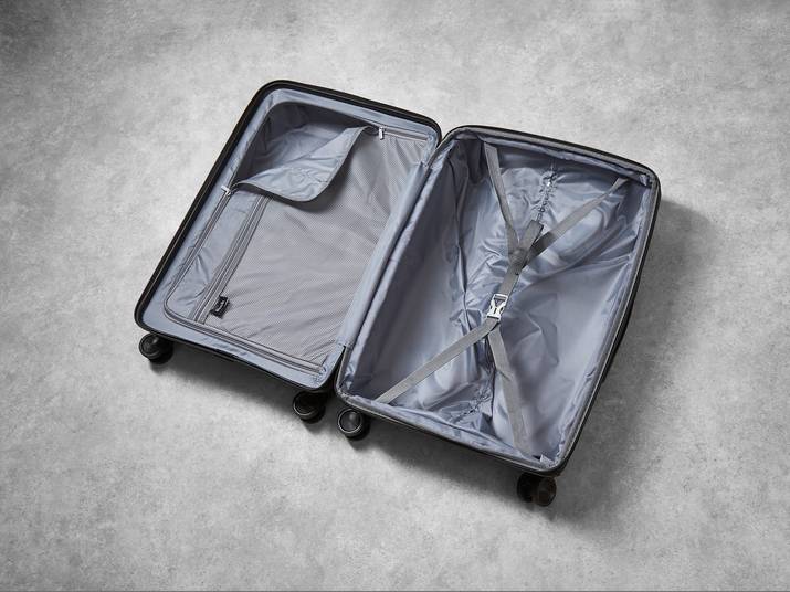 The interior of Vancouver has luxurious soft touch lining and a mesh divider section. The design also features a convenient zipped inside pocket and adjustable packing straps to keep your clothes securely in place.