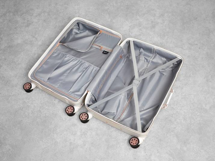 The interior of Vintage has luxurious soft touch lining and a mesh divider section. The design also features a convenient zipped inside pocket and elasticated packing straps to keep your clothes securely in place.